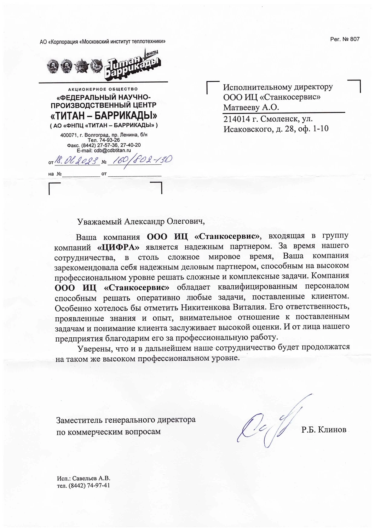 о профессионализме сотрудников ООО ИЦ «Станкосервис».